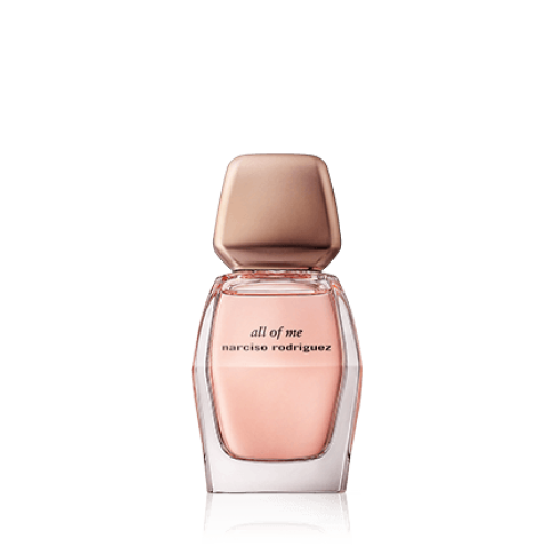 All of Me de Narciso Rodriguez es una fragancia elegante y expresiva centrada en un corazón floral luminoso envuelto en una firma almizclada profunda. Se abre con una suave nota de magnolia, que aporta un tono delicado y elegante. En el corazón, la mezcla de rosa centifolia y geranio bourbon crea un dúo floral distintivo y fresco, mientras que los almizcles blancos envuelven la fragancia como una “segunda piel”, añadiendo sensualidad sutil y profundidad. Las notas base de sándalo y ámbar aportan calidez y sofisticación al acabado. All of Me es una fragancia personal e íntima que refleja con elegancia las múltiples facetas de quien la lleva.